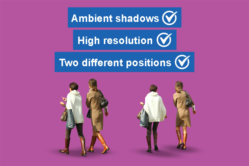 Unique cutout people with shadows to enhance your 3D renderings